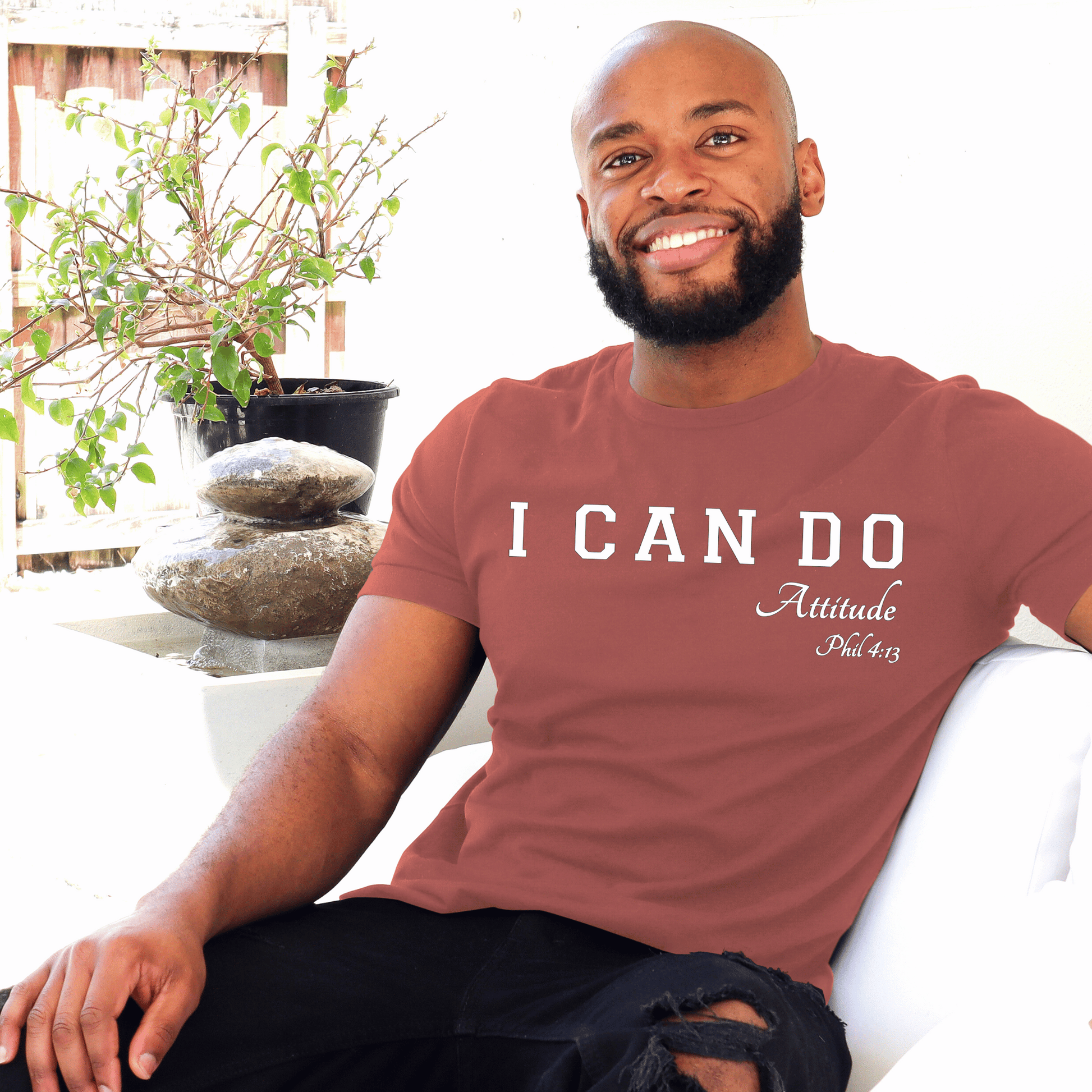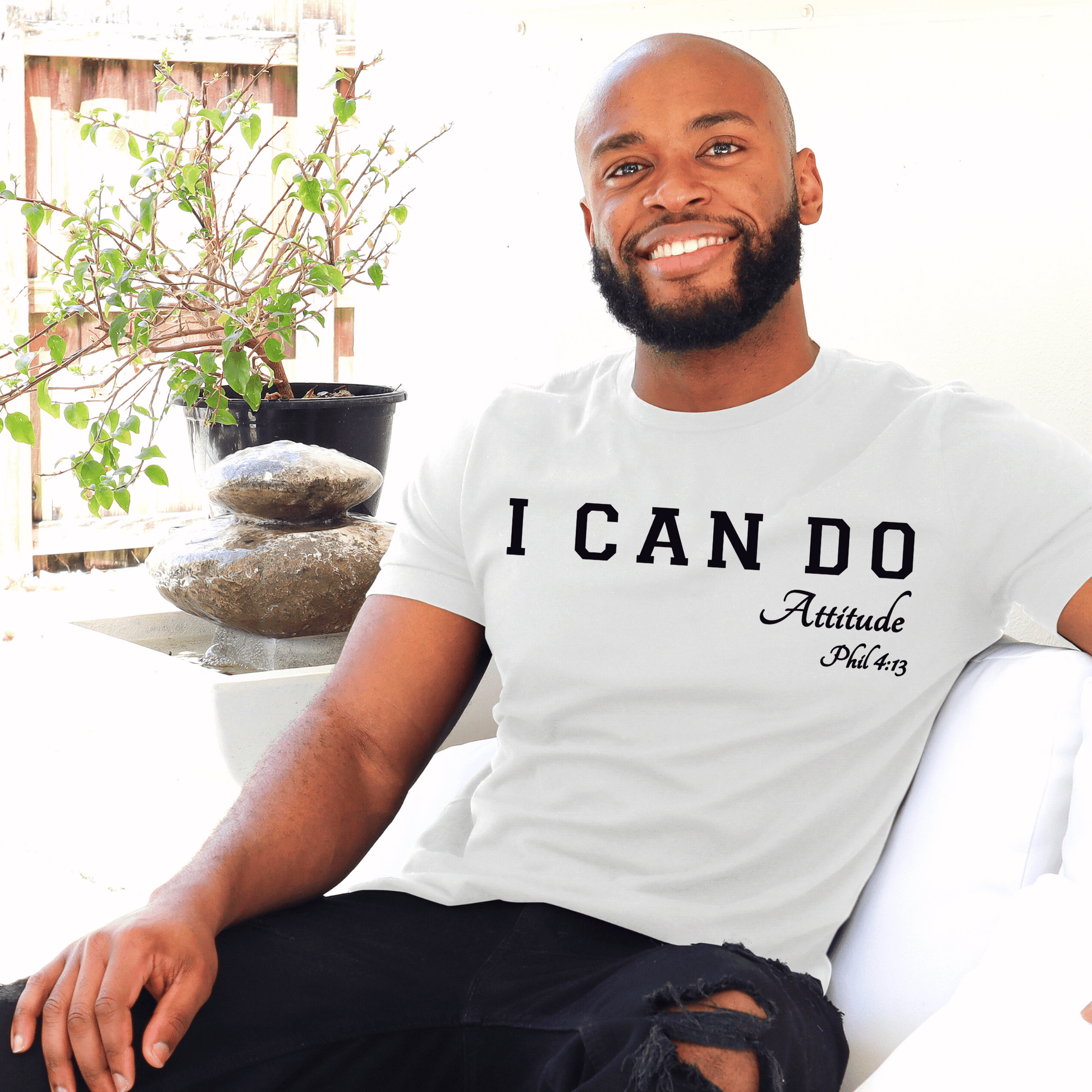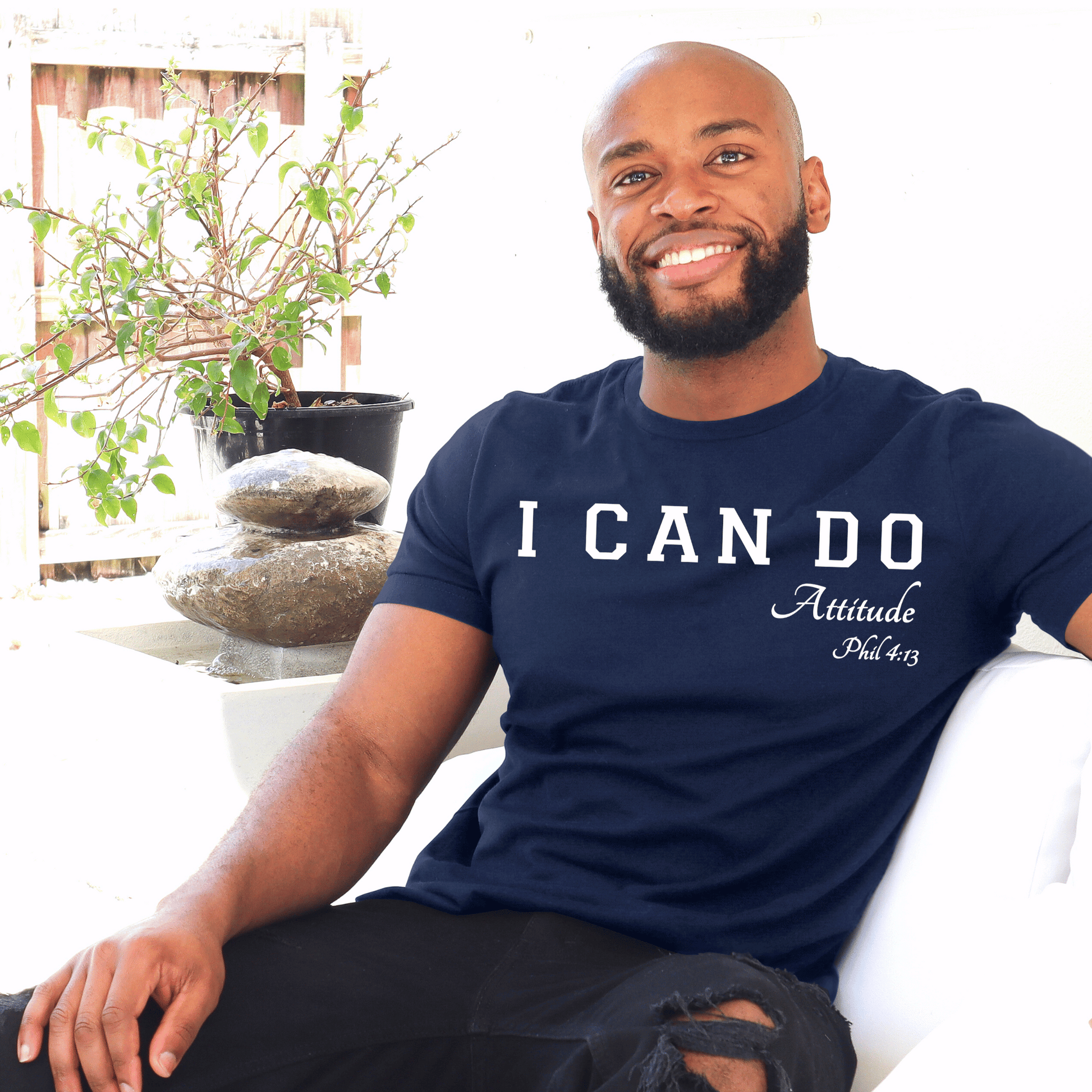 The I CAN DO ATTITUDE Men's Tshirt is an inspirational tshirt. It’s a personal reminder as you face your goals and struggles that “I can do all things through Christ who strengthens me” A biblical truth and inspired message from Phil 4:13.